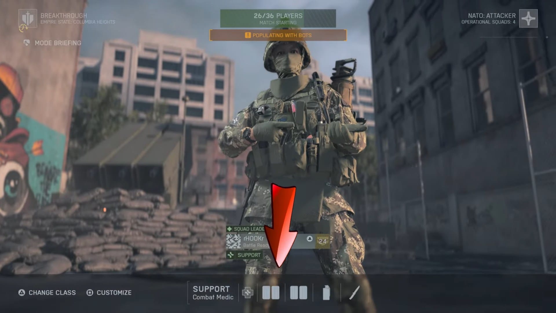 Select the Support class in multiplayer. Equip your preferred primary weapon but prioritize having the revive gadget equipped and ready.