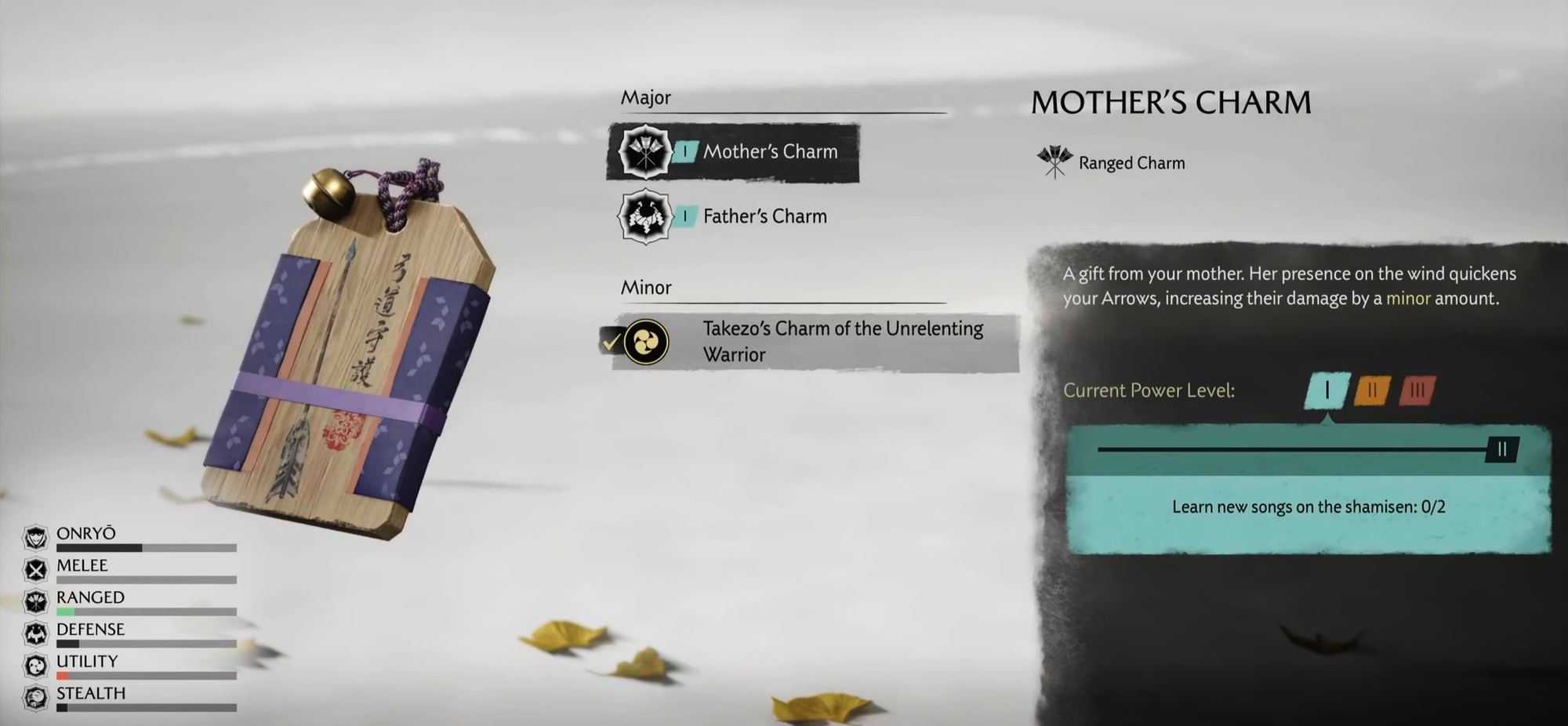 The Mother's Charm is a minor buff charm that increases your arrow damage by a small percentage. This makes it extremely useful for players favoring ranged combat builds, giving you an edge in fights early on when weapon upgrades are limited.