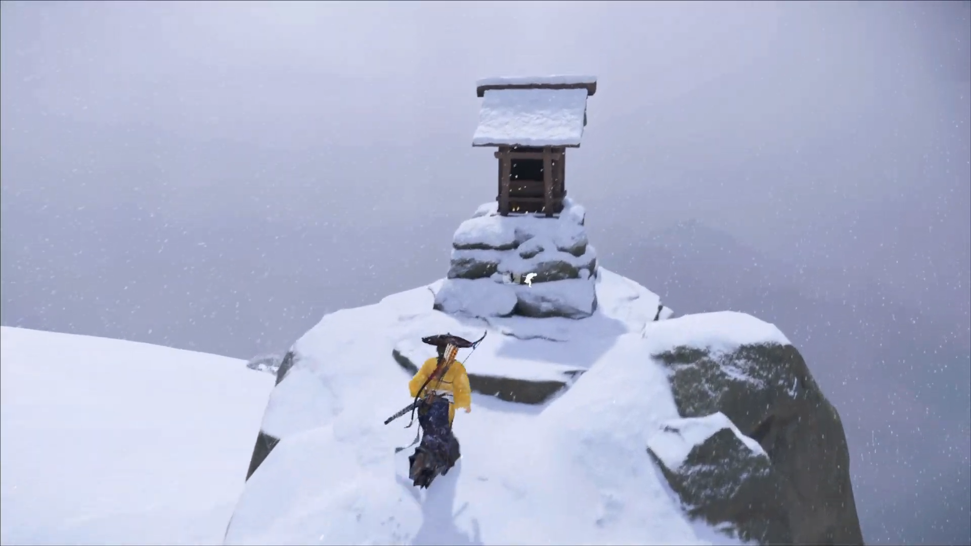 At the summit, approach the shrine and perform the prayer interaction.
