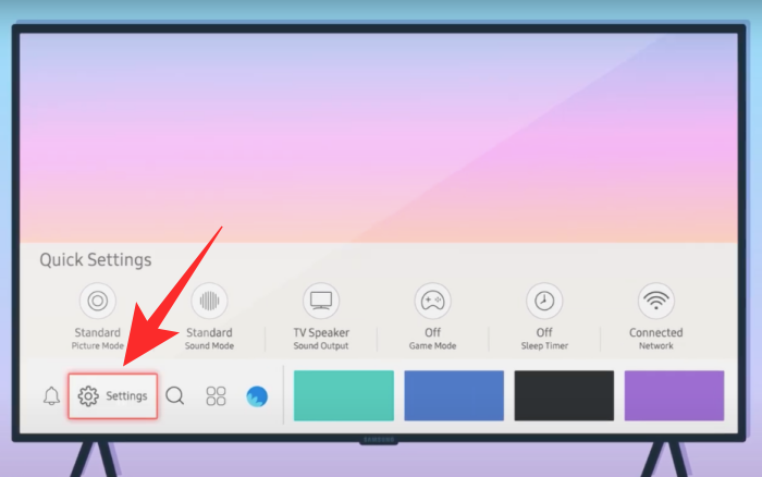 This should show the Smart Hub section on your TV screen. On this screen, navigate to the Settings option and select it.