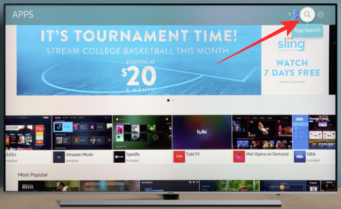 After the app has been removed from your TV, you can install it again by going to the ‘Apps’ tab on the Smart Hub.