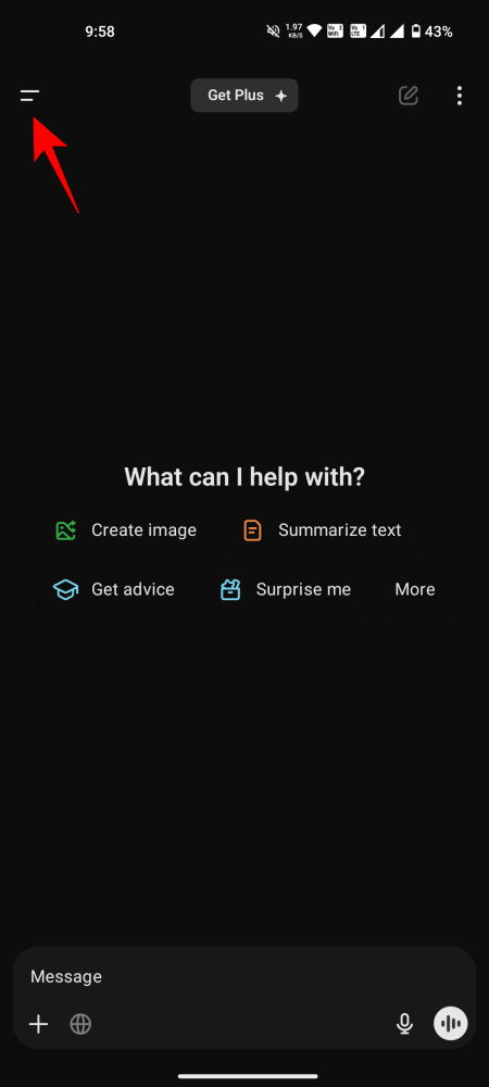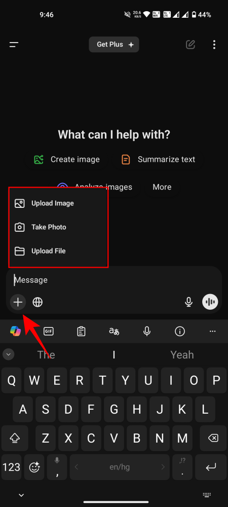 If you need to ask ChatGPT about an image or a file, simply tap on the + icon in the bottom left. Then select the media you want to upload.
