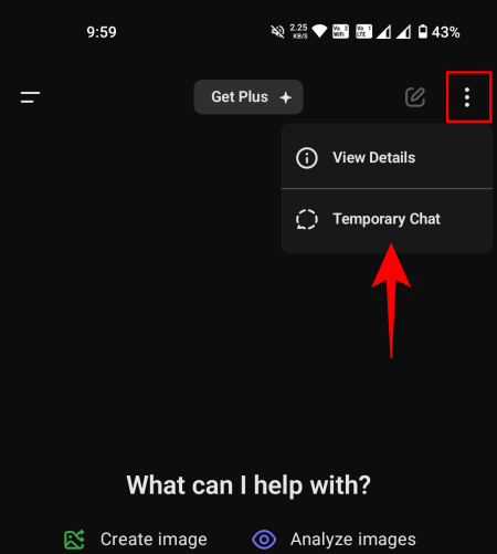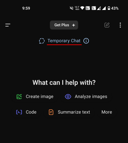If you don’t want a chat saved, you can start a temporary chat as well. Tap on the three-dot icon in the top right corner and select Temporary chat.