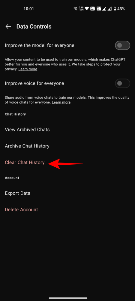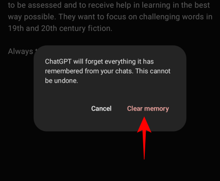- Or, to clear all of its memory, tap on Clear ChatGPT’s memory.