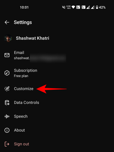 - In ChatGPT’s Settings, tap on Customize > Memory.