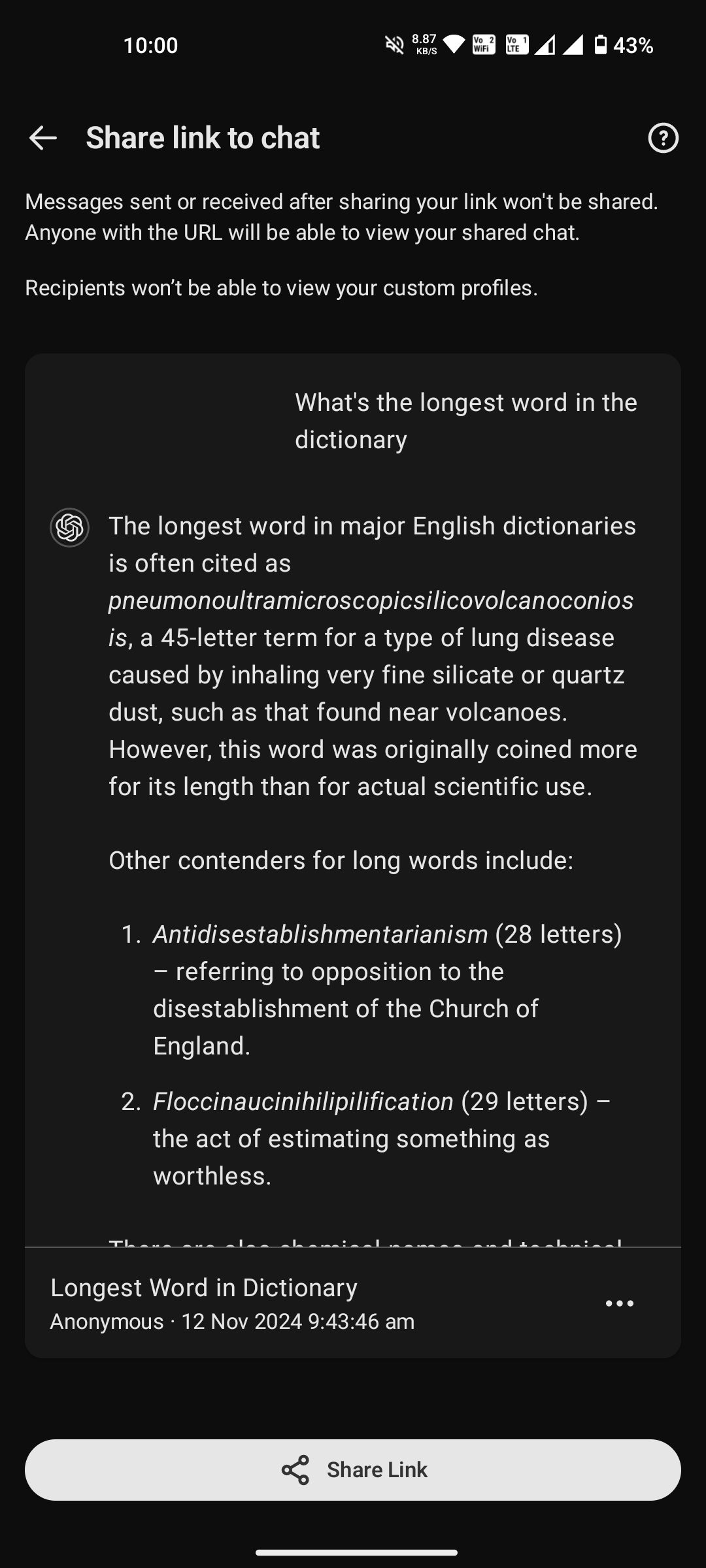By default, your name will be removed from the chat. But if you want to add include your name, tap on the three-dot icon in the bottom right corner and select Share your name. You can also Edit title if you like. Once you’re satisfied, tap Share Link.
