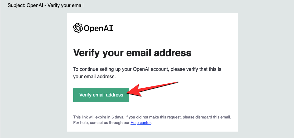 At this point, launch your inbox and open the email you received from OpenAI. Here, click on Verify email address to authenticate your account.