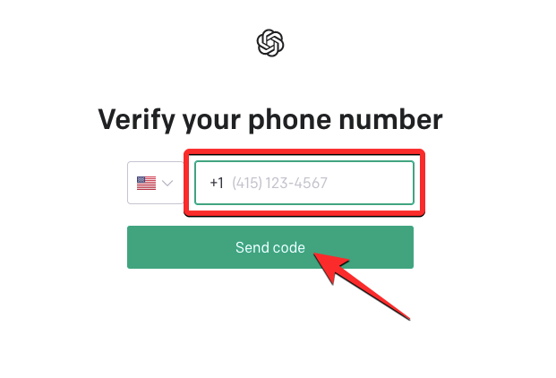 On the next page, you’ll be asked to enter your phone number. Once you’ve entered your phone number, click on Send code.