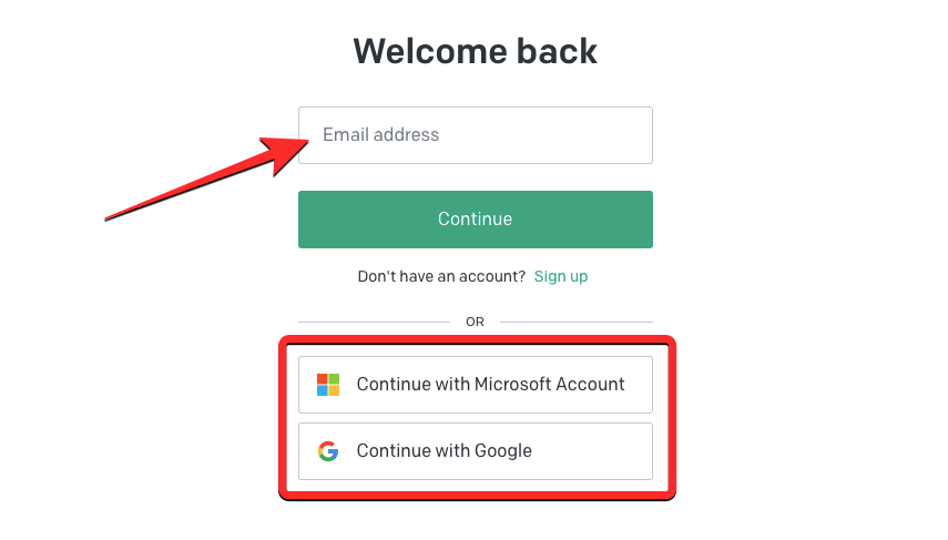 If you have signed up on OpenAI before, you can click on Log in and follow the instructions from the section above to sign into your existing account. In case it’s your first time ever using ChatGPT, you will need to click on Sign up to get started.
