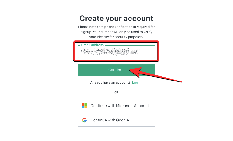 Note: If you use an email address other than Microsoft or Google, you are required to provide your phone number separately to verify your account. When signing up via Microsoft or Google, your phone number linked to either of these accounts may not get shared with OpenAI.