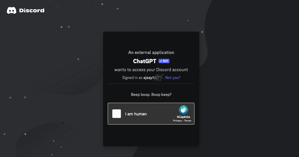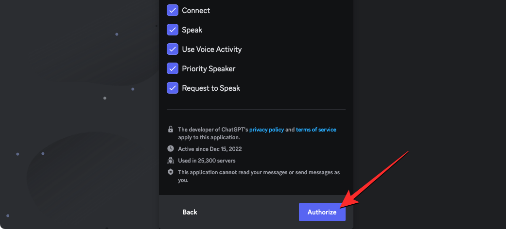 When everything has been sorted, you should see the Authorized message on the screen. You can now close this tab and go back to your main Discord tab to interact with ChatGPT.