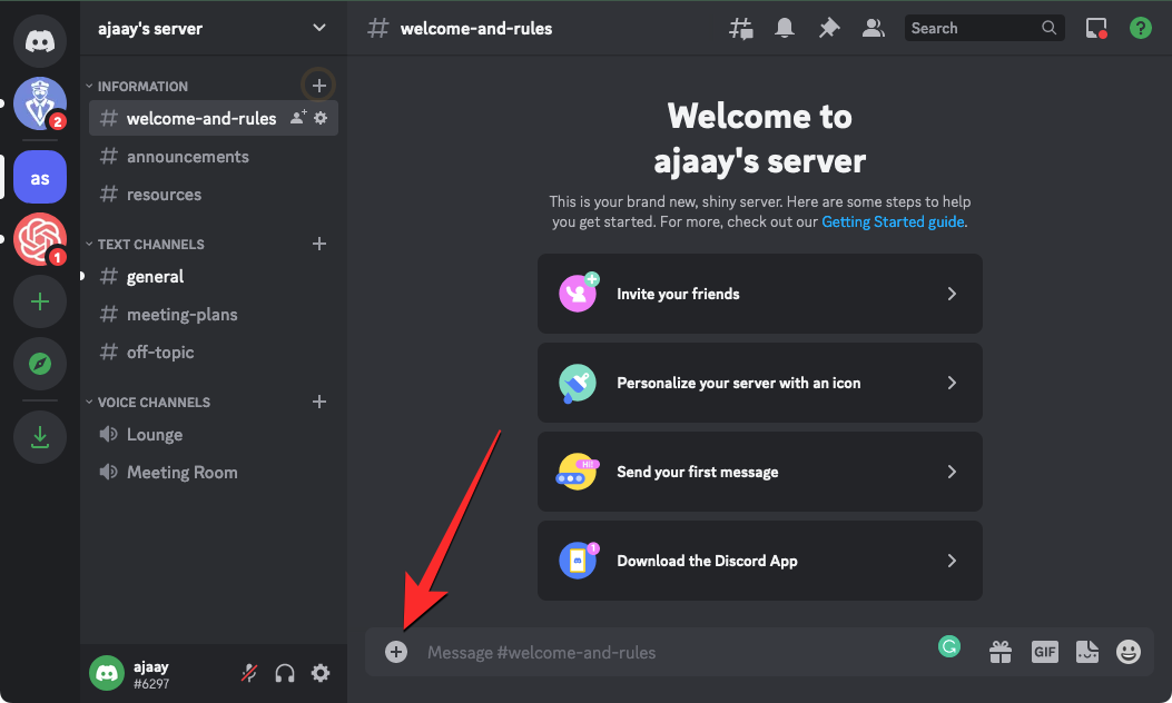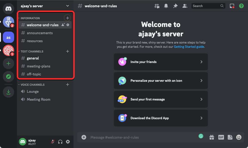 When the server opens, click on any channel under “Information” or “Text Channels” where you want to use ChatGPT on.