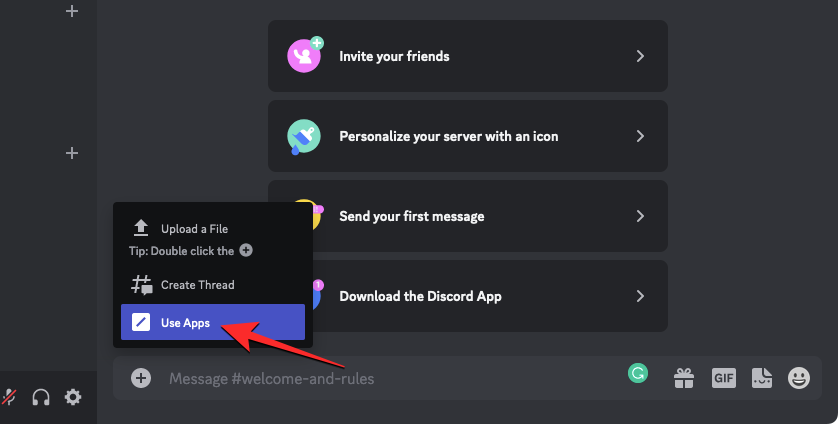 Inside a Discord channel, click on the + button at the bottom on the left side of the text box.