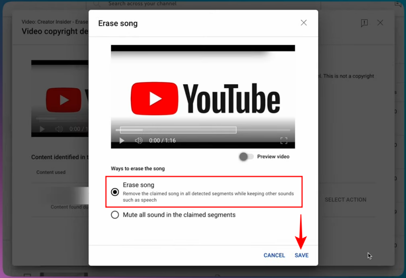 How to use ‘Erase Song’ tool to mute claimed audio in your video