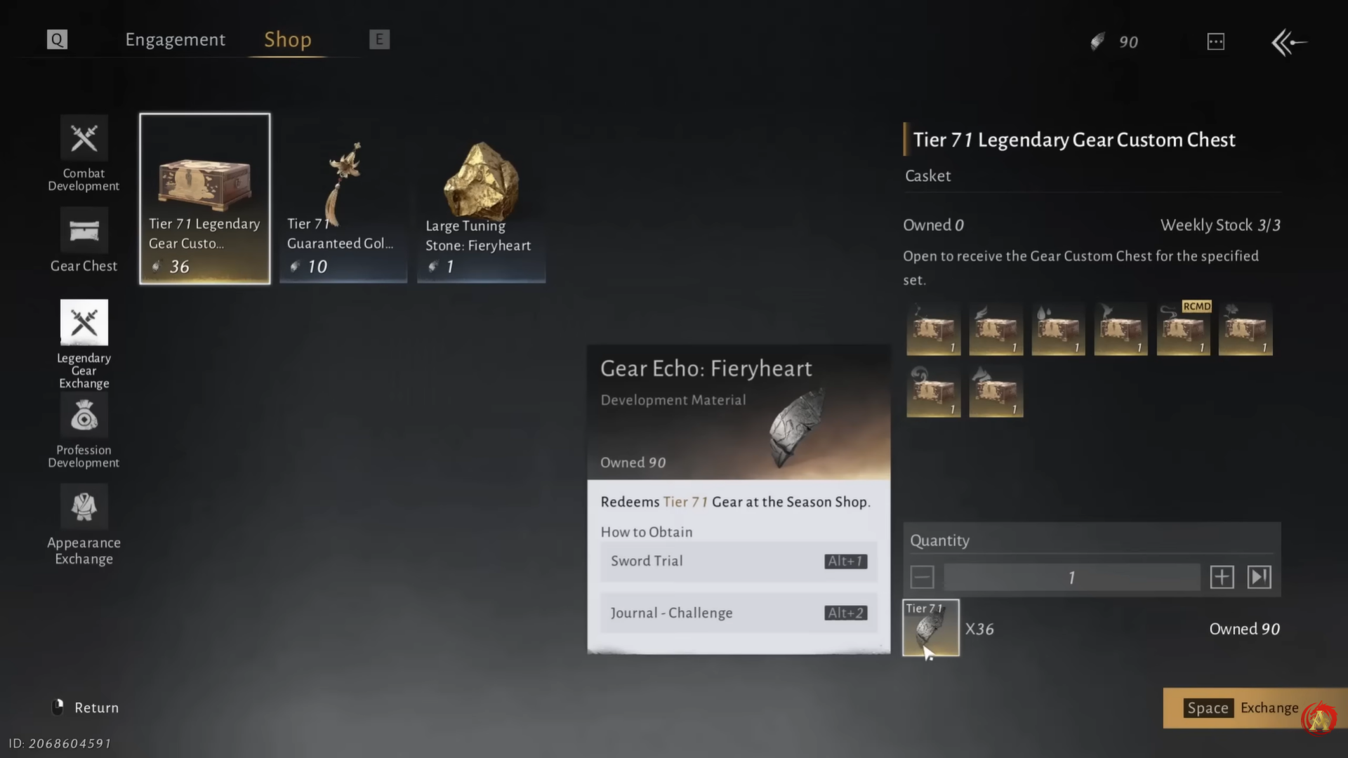 Here is a complete step-by-step guide to use the Fieryheart Gear Echo in the newly added Legendary Gear Exchange shop: