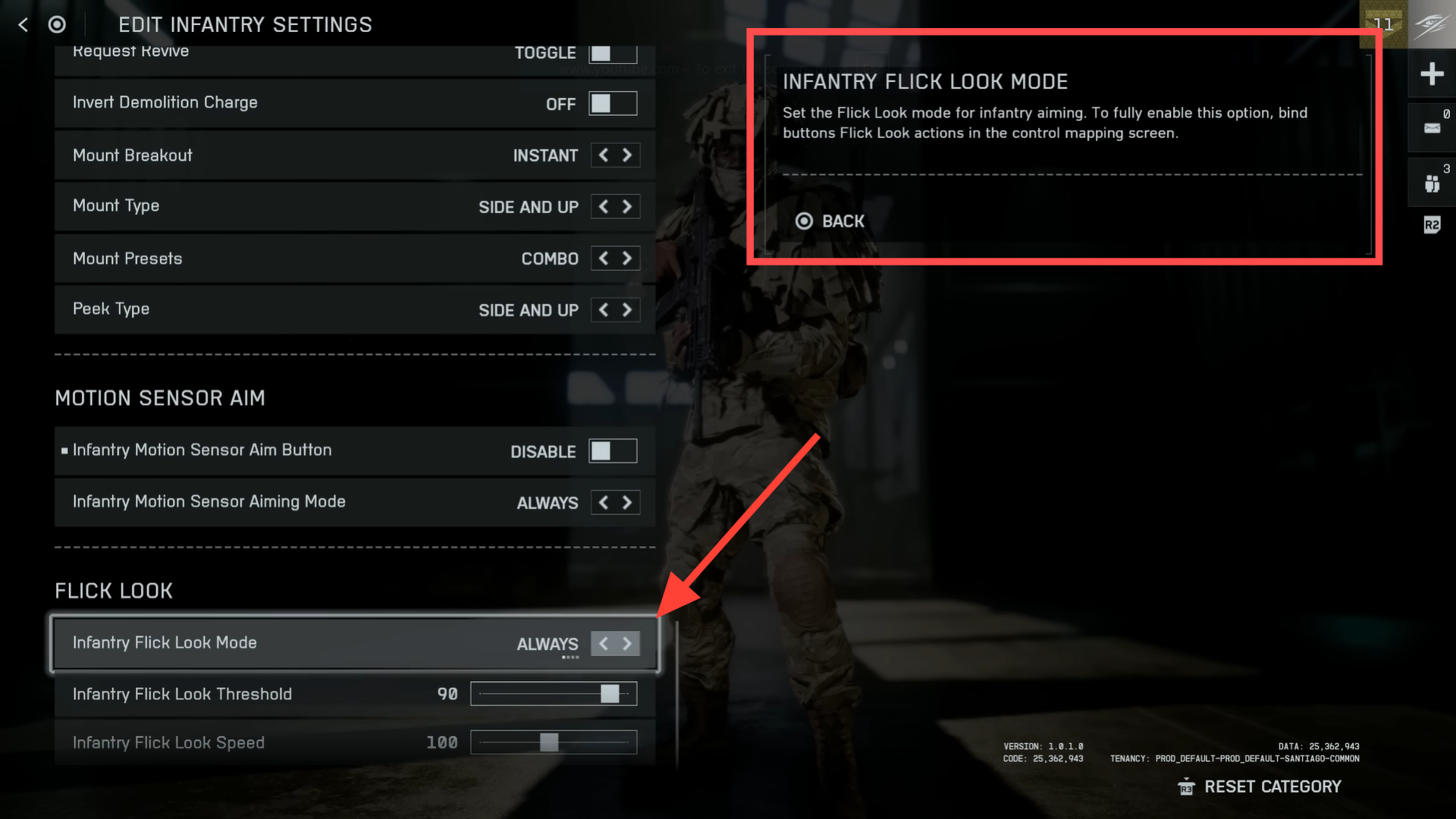 - Confirm you’re in the aircraft control section, not infantry controls. Flick Look settings are separate for each category.