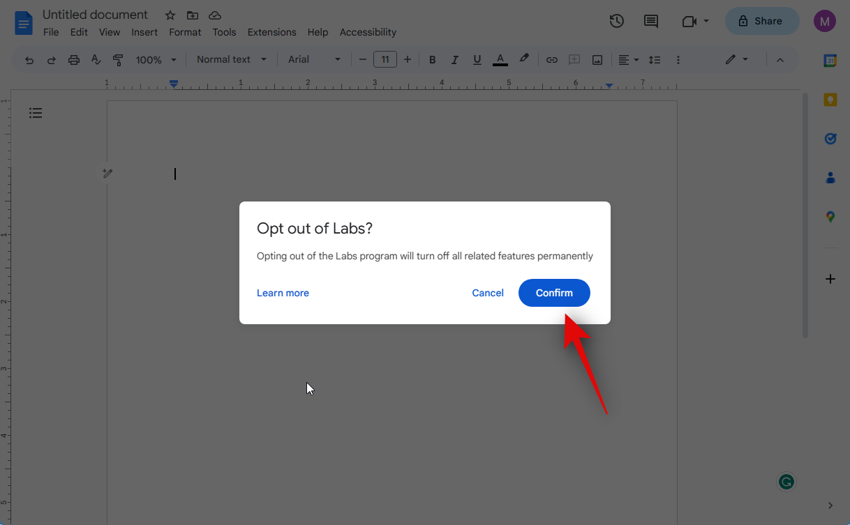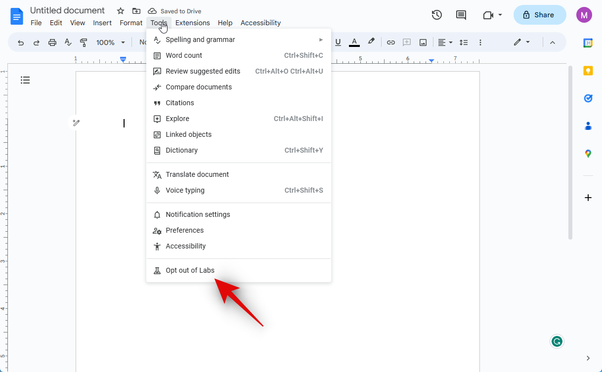 How to opt out of Workspace Labs in Google Docs