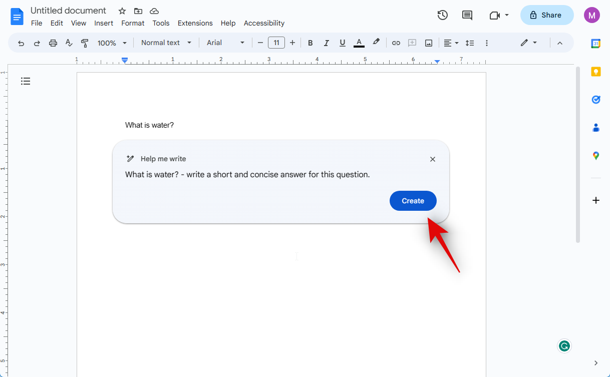 Next, add your prompt for the AI as needed. You can prompt the AI to continue your text or start from scratch. Let’s ask the AI to answer the question added.