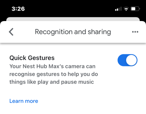 Quick Gestures: This option allows your Nest Hub’s camera or soli sensor to detect air gestures that you perform in front of your device. These gestures can then be used to pause and resume media, dismiss alarms and timers, and stop Assistant when it’s talking.
