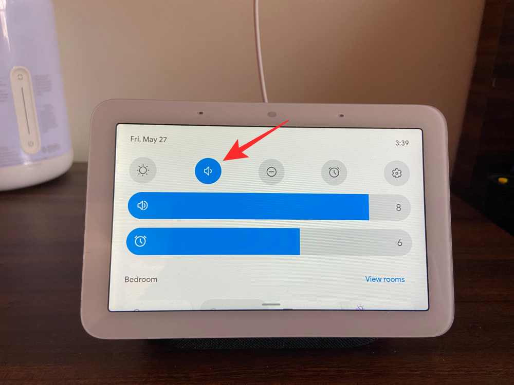 In many ways, your Nest Hub behaves like a smartphone and you can access the device’s quick settings to adjust the sound and brightness, trigger DND, set an alarm, or open settings directly from the home screen. To do that, swipe down from the top of the Nest Hub display.