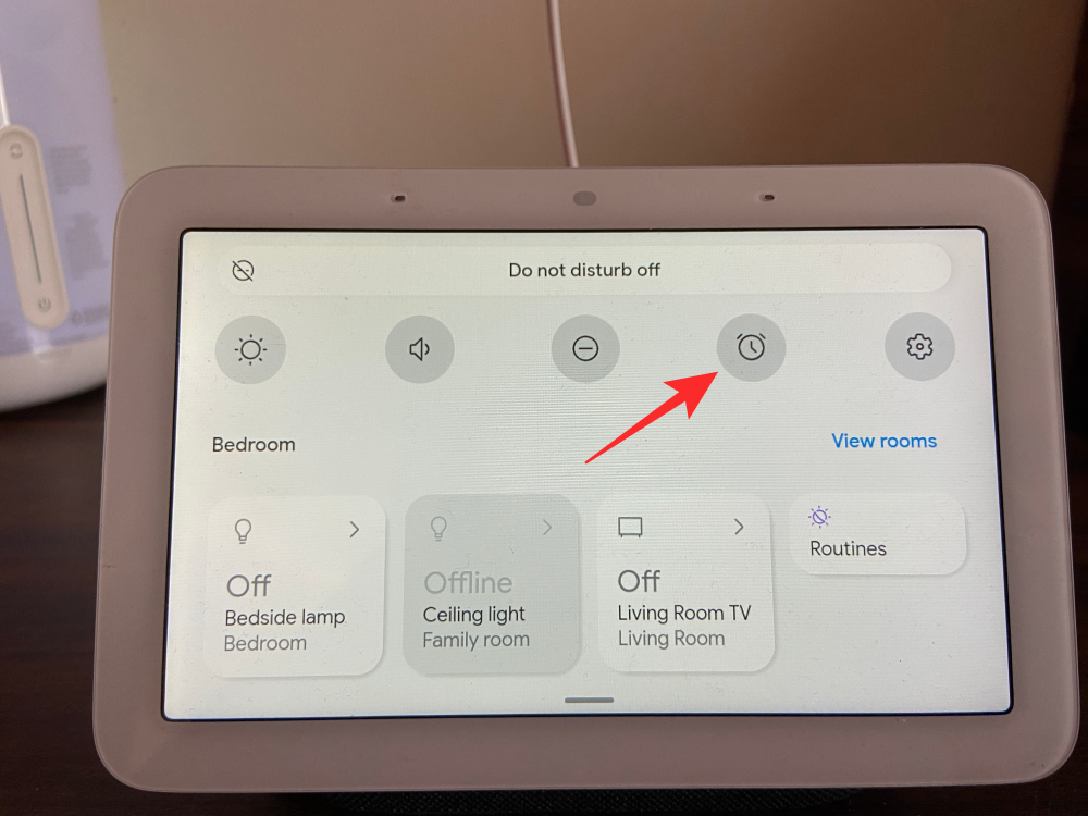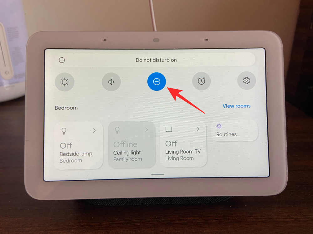 You can turn on DND mode on your Nest Hub by tapping on the DND tile at the top.