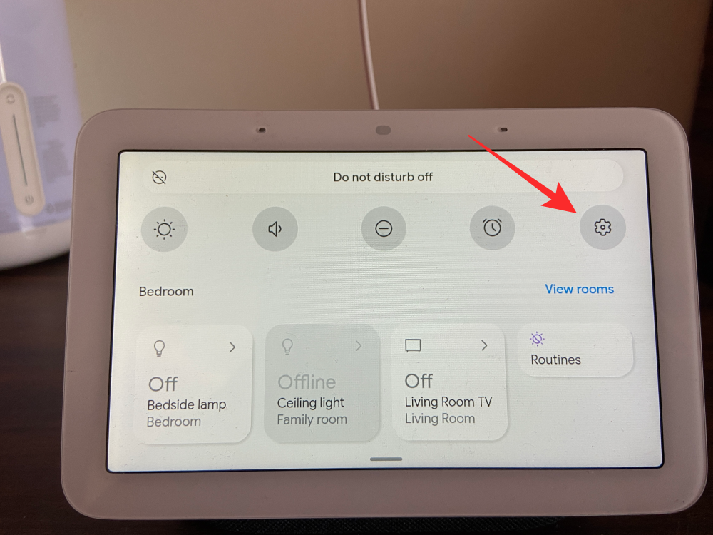You can access your Nest Hub settings by tapping on the cogwheel icon inside the device’s quick controls.