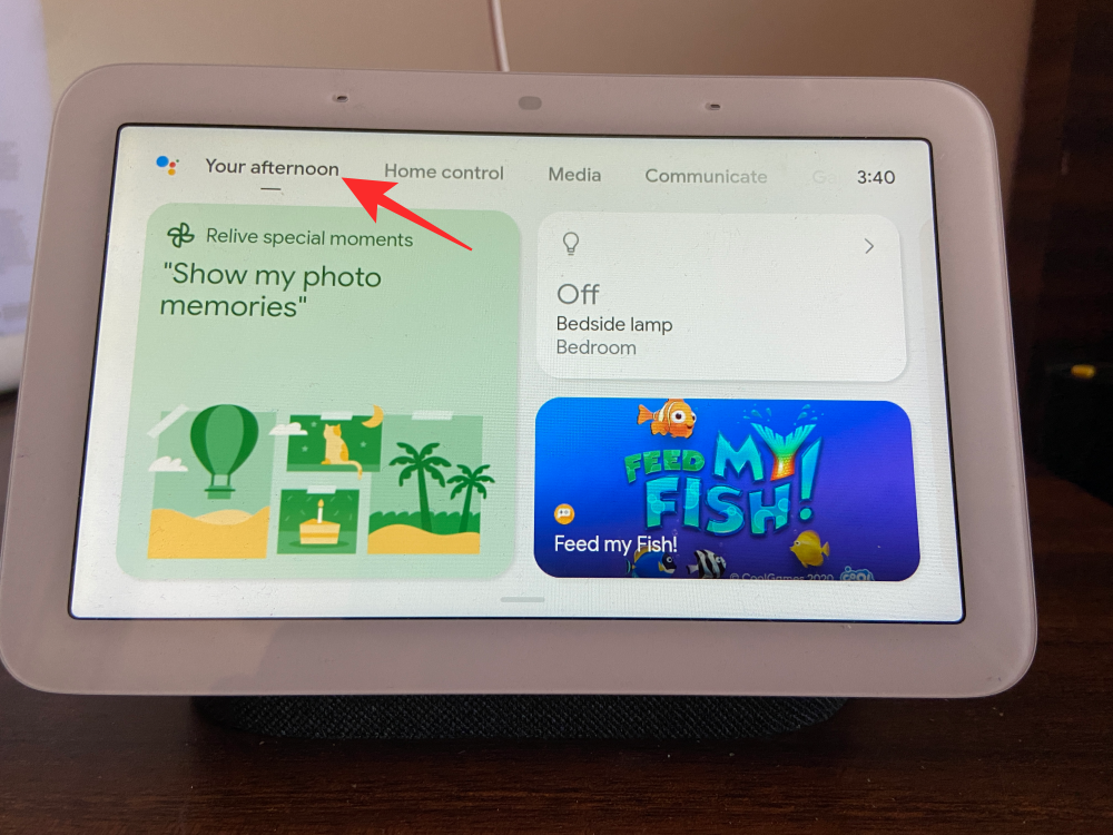 With touch gestures, you can do a lot more than just access apps and quick settings on your Nest hub. You can access different pages on the Nest Hub that shows important information about the day to come, devices you have linked, media controls, household contacts, and any relevant content. To access these pages, tap on your Nest Hub display when it’s showing pictures or is in ambient mode, and then swipe left from the right edge to open the different pages of your smart display. You can also tap on page names at the top of your Home Screen after you tap on your Nest Hub’s idle display.