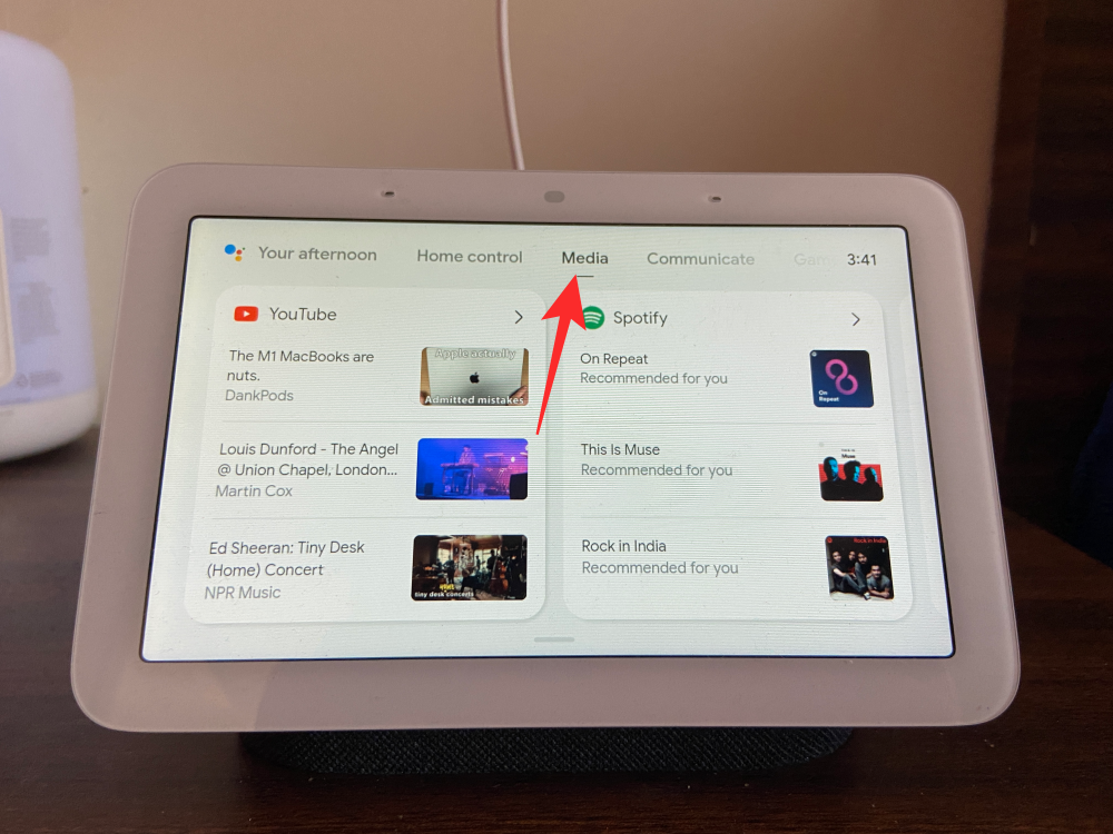 Media: On this page, you can view your ongoing media activities across all the apps you’ve added to your smart display. You can play recommendations across music, YouTube videos, TV shows, movies, podcasts, and news.