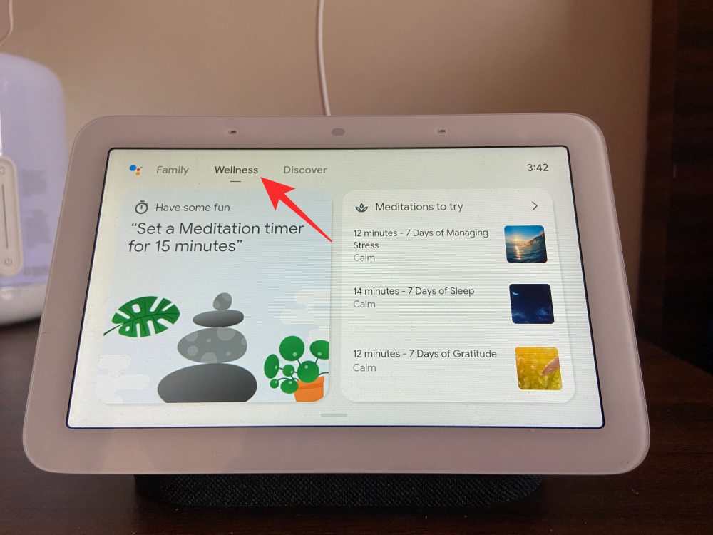 Wellness: On this page, you can view your Sleep Sensing info, create meditation timers and check different meditation practices from your recommendations. This page is accessible only inside the Nest Hub 2nd gen.