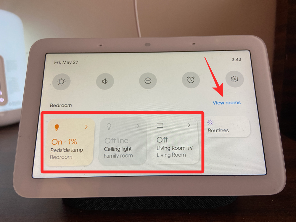 Your device will now show a familiar screen with five quick control tiles at the top and access to your other smart home devices at the bottom. You can tap on any of the tiles at the bottom to control your different home devices. You can also tap on View rooms to control devices across different rooms.