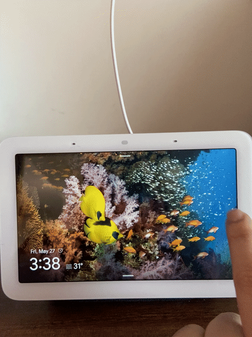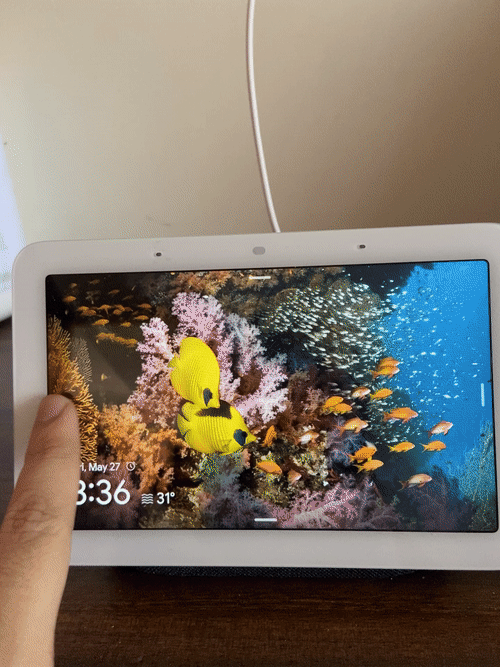 When the Nest Hub is sitting idle, you will see the Photo frame on its display. To navigate to the other screens, you will have to use swipe and touch controls from within this screen.