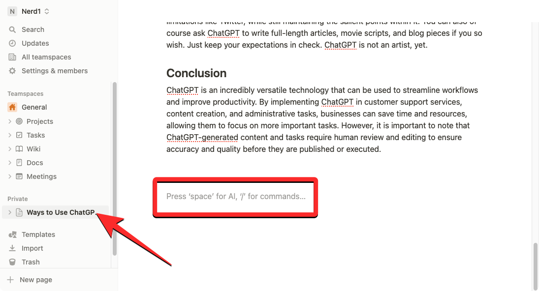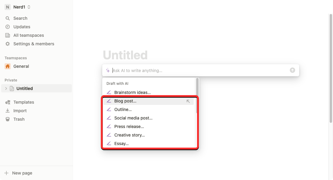 1. How to start a rough draft with Notion AI for a good headstart
