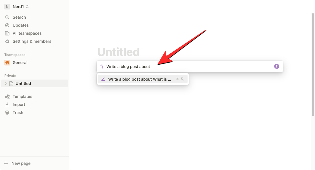 To ask Notion AI to suggest you ideas about something, it’s recommended that you create a new page on your Notion account so that the generated content doesn’t overlap with existing texts from a page.