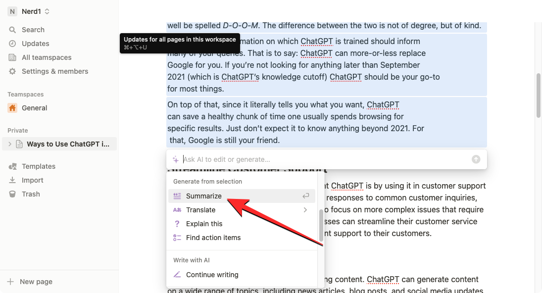 2. How to summarize content using Notion AI