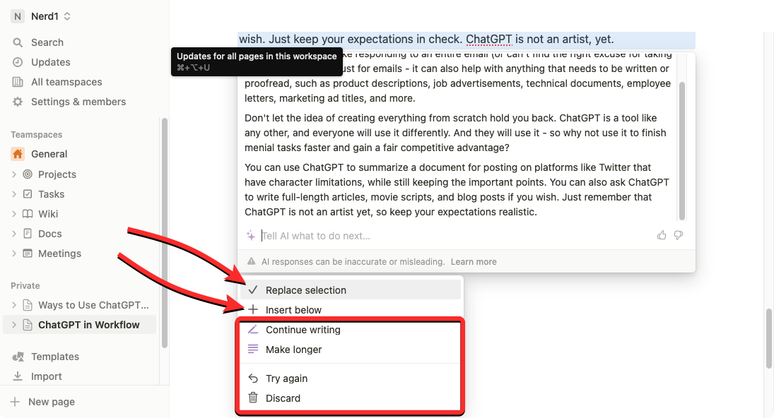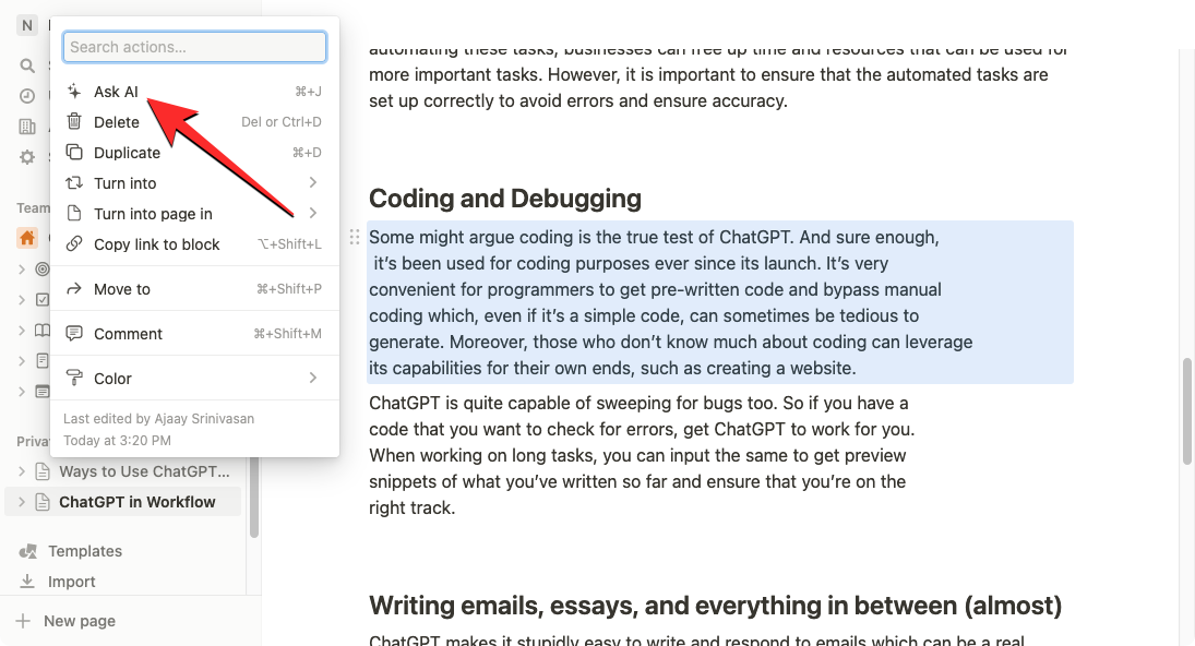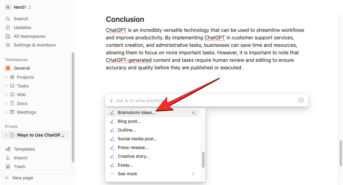 3. How to get suggestions and ideas from Notion AI