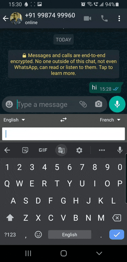 To use real-time voice translation, launch an IM application like WhatsApp, and make sure you have Gboard set as your default virtual keyboard.