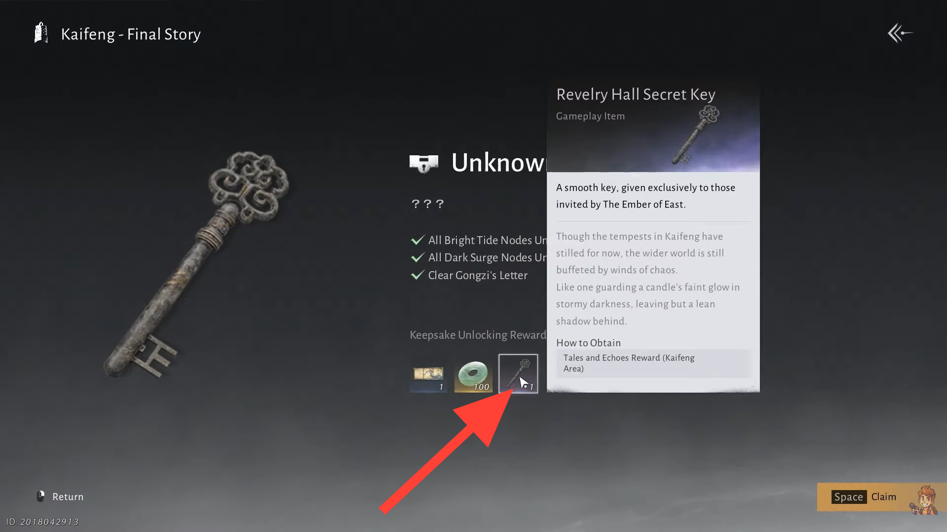 The Revelry Hall Secret Key is a one-time-use item that unlocks a hidden door on the fourth floor of Revelry Hall in Kaifeng, but only after completing the Jianghu Legacy story “Gambit Beneath the Shimmer.” Once the story is done, return to Revelry Hall, climb to the newly unlocked floor, turn right from the stairs, and use the key on the locked door to access the secret room and its rewards.