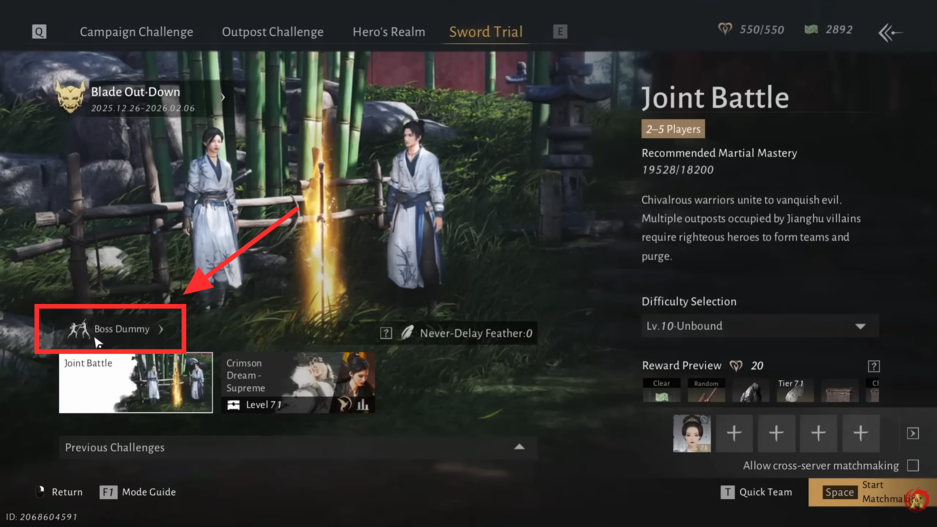 You access them through the Sword Trial → Training Ground, where you can summon different boss-style targets and freely adjust conditions to match real fights.