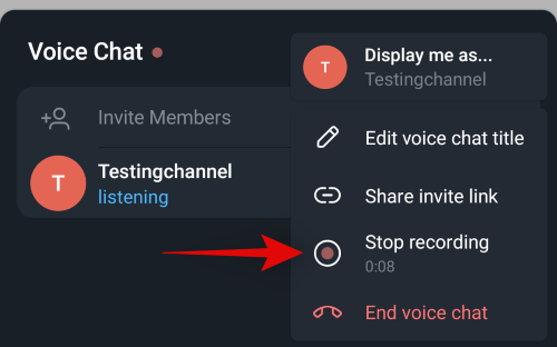 Note: Only admins can initiate a recording for an ongoing voice chat.