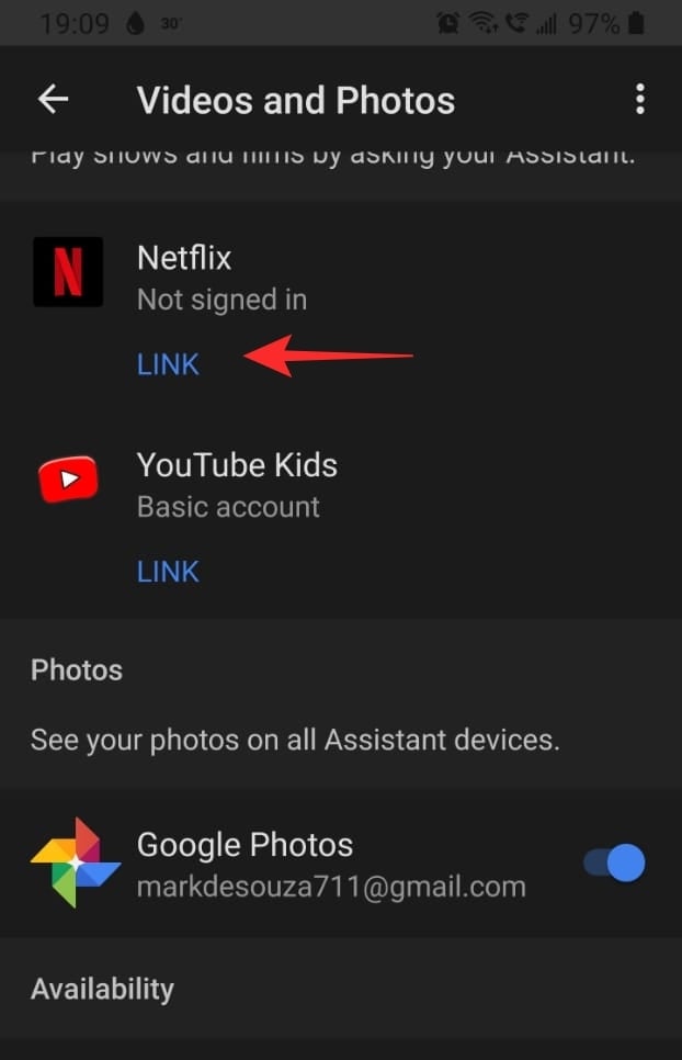 You should already see the Netflix logo show up. Tap ‘Link’ under Netflix. You will get a popup letting you know that you need to link your Google account to your Netflix account. Hit ‘Link Account’.