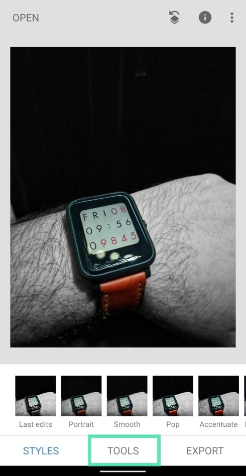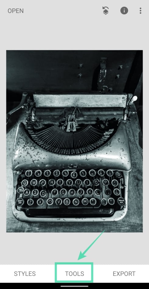 Step 5: After the picture is loaded, tap on the Tools tab at the bottom.