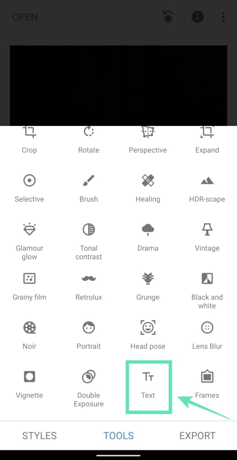 Step 2: Tap the Text tile upon opening the Tools menu.