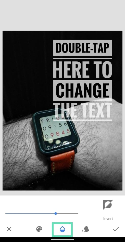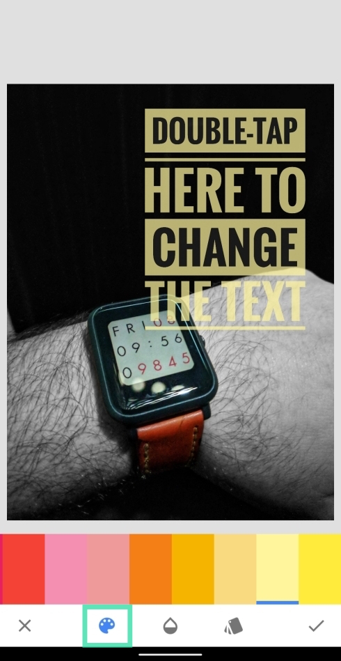 Step 5: Tap the paint icon from the bottom toolbar and choose the color of the text you want to add as a watermark.