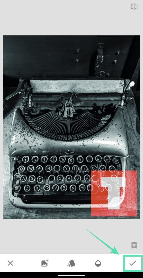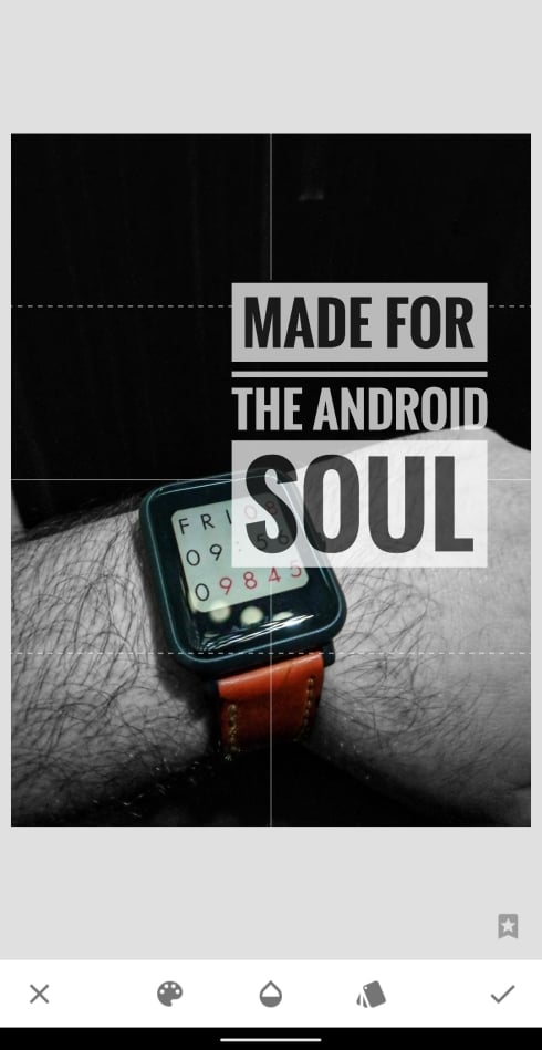 In case you don’t have a logo, you can add a text as a watermark over your image by following these steps on Snapseed.