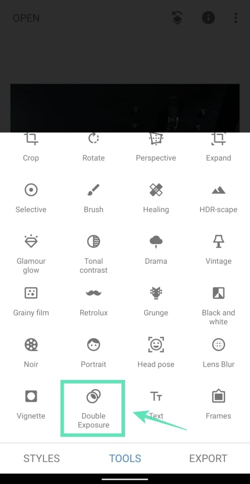 Step 6: Select the Double Exposure tile from the menu.