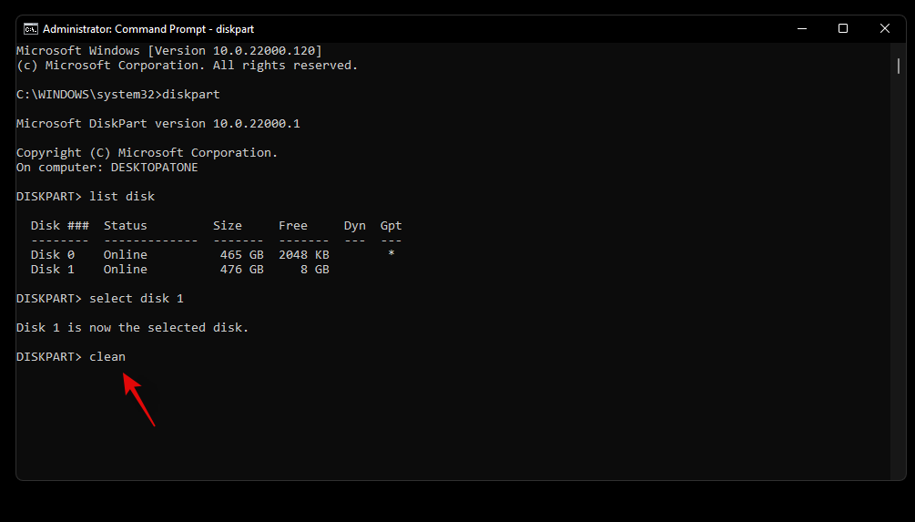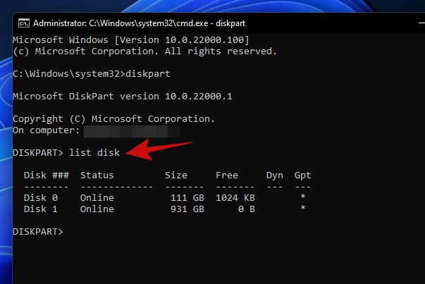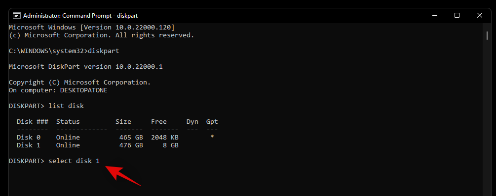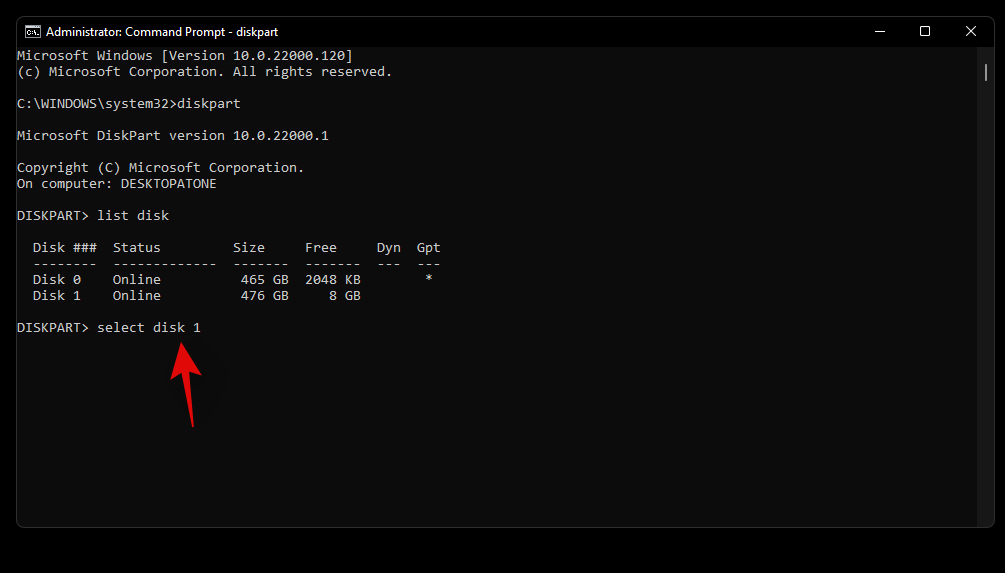 3. Enter the following command and replace N with the disk number you noted down earlier. select disk N