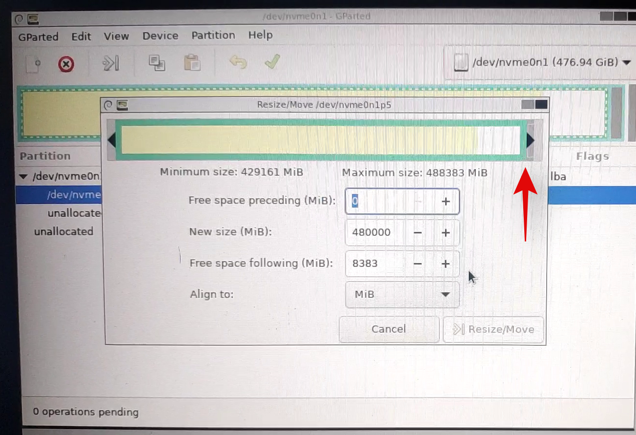 15. Select the entire size of your disk and enter a name for your disk beside the label text field. If resizing an existing partition, use the slider at the top to drag it to the maximum size.