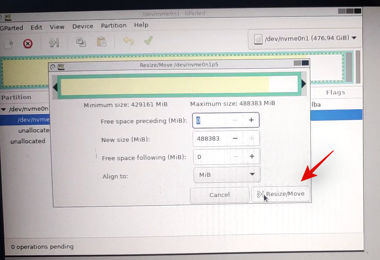16. Click on ‘Ok’ or ‘Resize/Move’ depending on your choice.