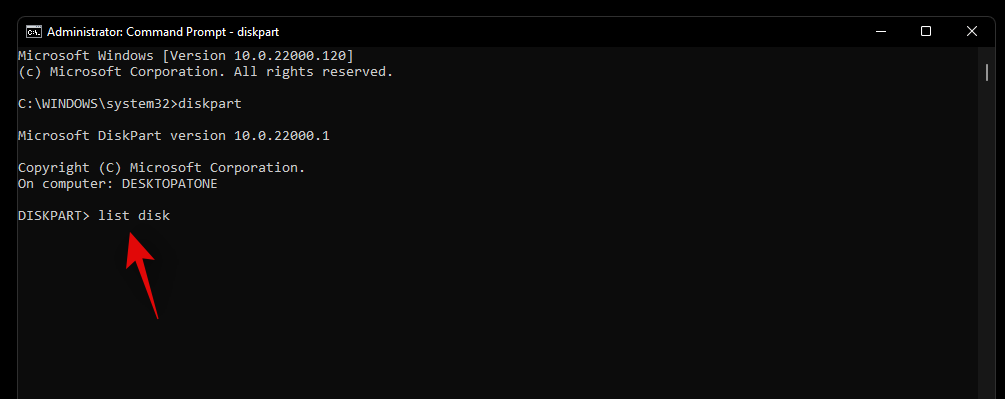 4. Type ‘list disk’ and press enter. This should list all the disks connected to your PC.