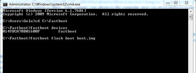 - Now, type the following commands in command prompt to flash the boot.img file, pressing Enter after each command (Check the screenshot after step 14.3 for reference).